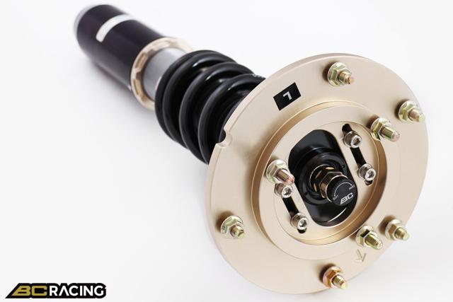 BC Racing Coilovers DS Series is perfect for street driving and occasional road course duty. With easily accessible adjustment knobs for fine tuning your compression/rebound and separately adjustable ride height, having a performance coilover system couldn’t be any easier. You choose how low or high you want your vehicle, no preset ride height here, and patented concave lower locking ring keeps it locked in. Ride height is adjusted by raising and lowering the shock body; this maintains the same ideal damper stroke at ALL ride height levels for the best ride under any conditions. The pillowball mount option provides the most available feedback possible from your suspension and to sharpen your steering response. All this while providing a strong, attractive looking coilover system.