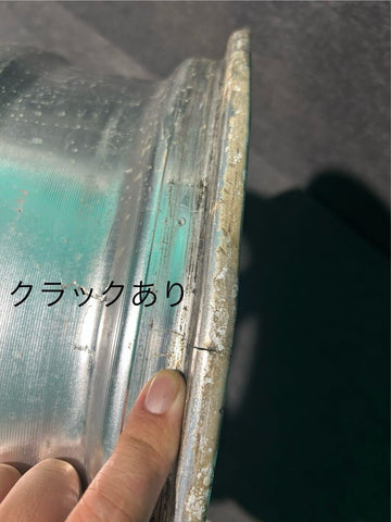 Original condition, scratches and imperfections, crack in barrel, some curbing, small bend in lip