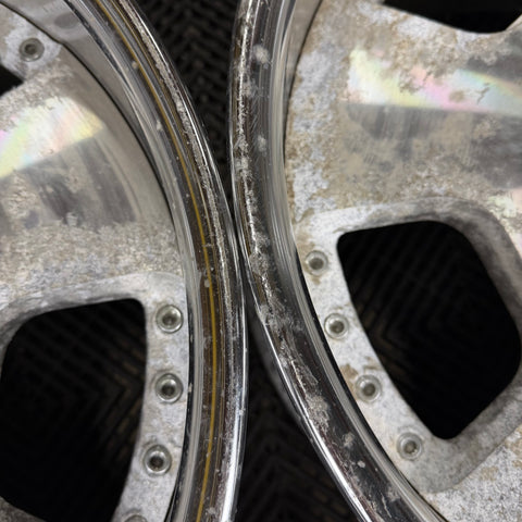 Original Condition, scratches and imperfections, corrosion under clear coat, some curbing Please note: We refinish wheels in house! If you'd like us to build to spec, powder coat or chrome plate we do it all! Send us an email at info@buypartsfromjapan.com with the link to the wheels and desired specs/ finishes and we will send you a quote! |