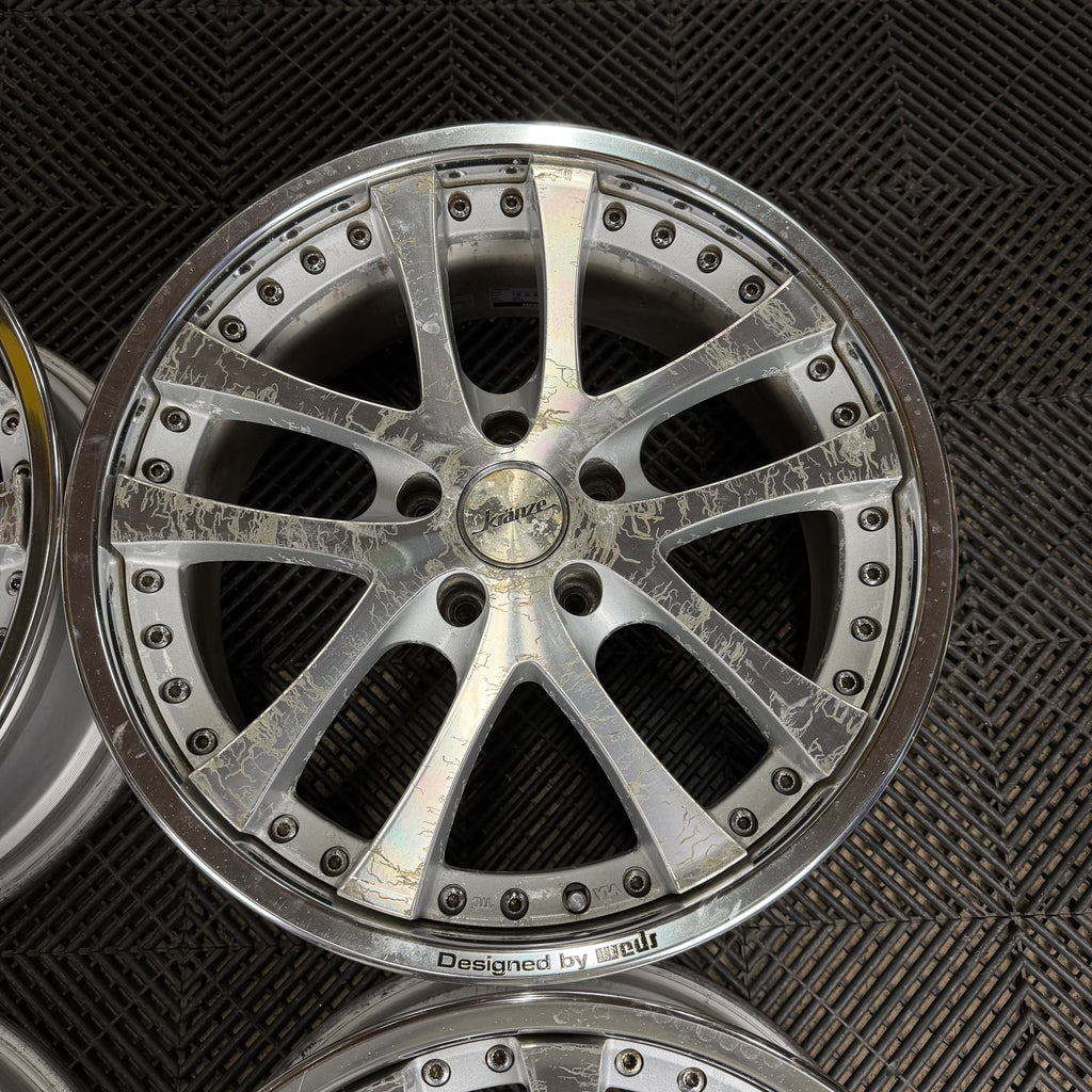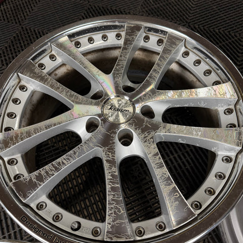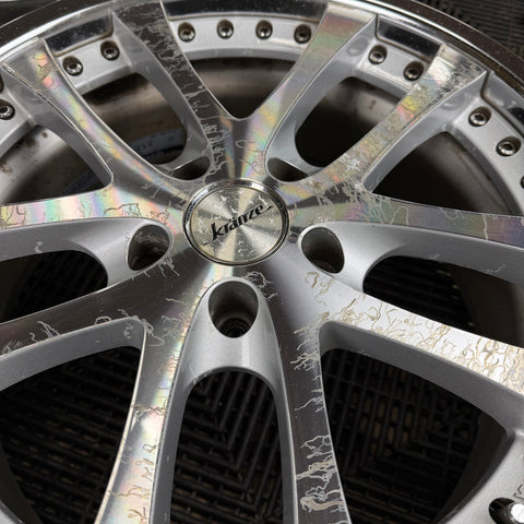 Original Condition, scratches and imperfections, corrosion under clear coat Please note: We refinish wheels in house! If you'd like us to build to spec, powder coat or chrome plate we do it all! Send us an email at info@buypartsfromjapan.com with the link to the wheels and desired specs/ finishes and we will send you a quote! |